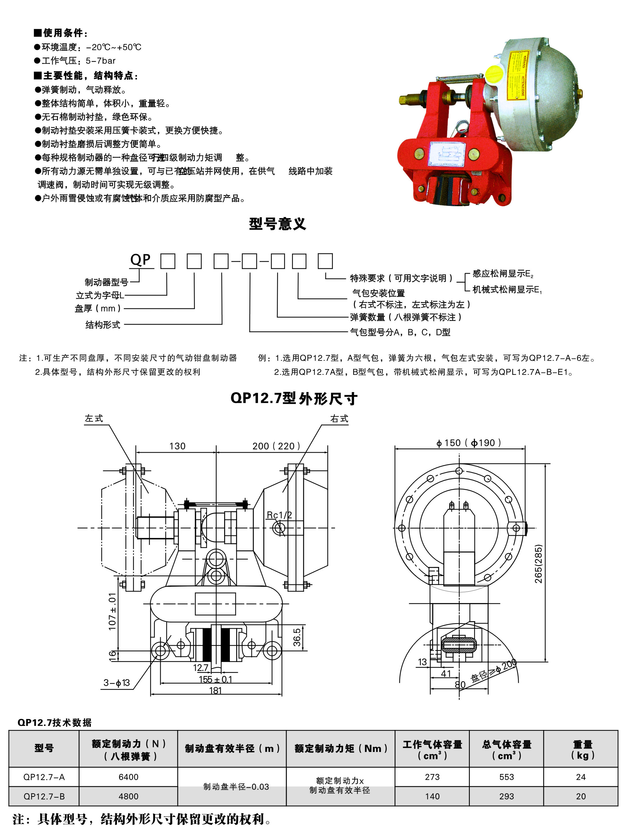 QP氣動(dòng)鉗盤(pán)制動(dòng)器