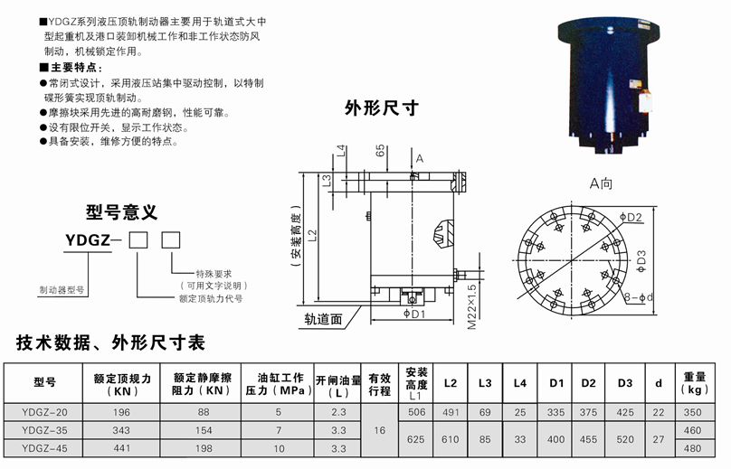 YPZ2電力液壓臂盤(pán)式制動(dòng)器
